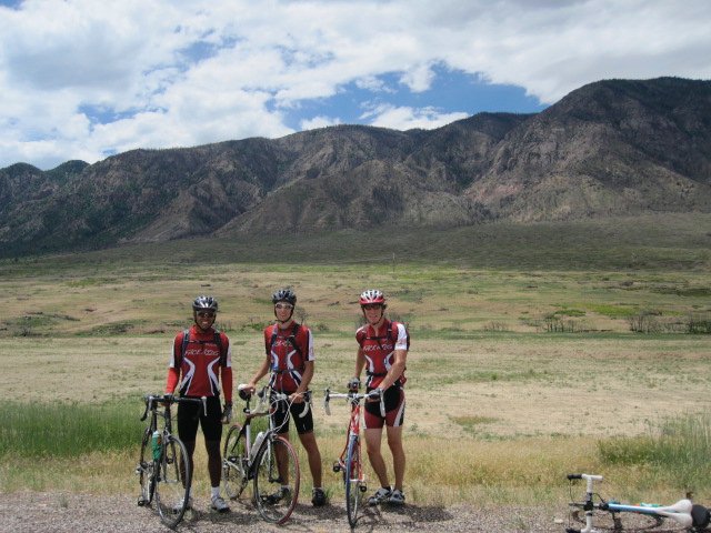 The morning began with a beat, as Shane’s tonsils clearly still felt the after-effects of his accident and his painkillers and kept the entire team awake with his snoring. Through Shane’s air horn, our tireless riders somehow managed to wake up at 6:00 AM to begin the day. Mike and Kirsten left first, continuing in their tradition of being perhaps the only riders who truly appreciate the scenery we pass by. It seems as though the two of them always manage to point out some important landmark missed by the fitness freaks that are Zane, Sanford, and Jason (ha ha, okay… you got me… Jason is still a wana-be fitness freak). As the sun rose higher, the rest of the group managed to navigate its way out of the Mesa State College campus, putting all five riders on the road at about 7:30 AM.